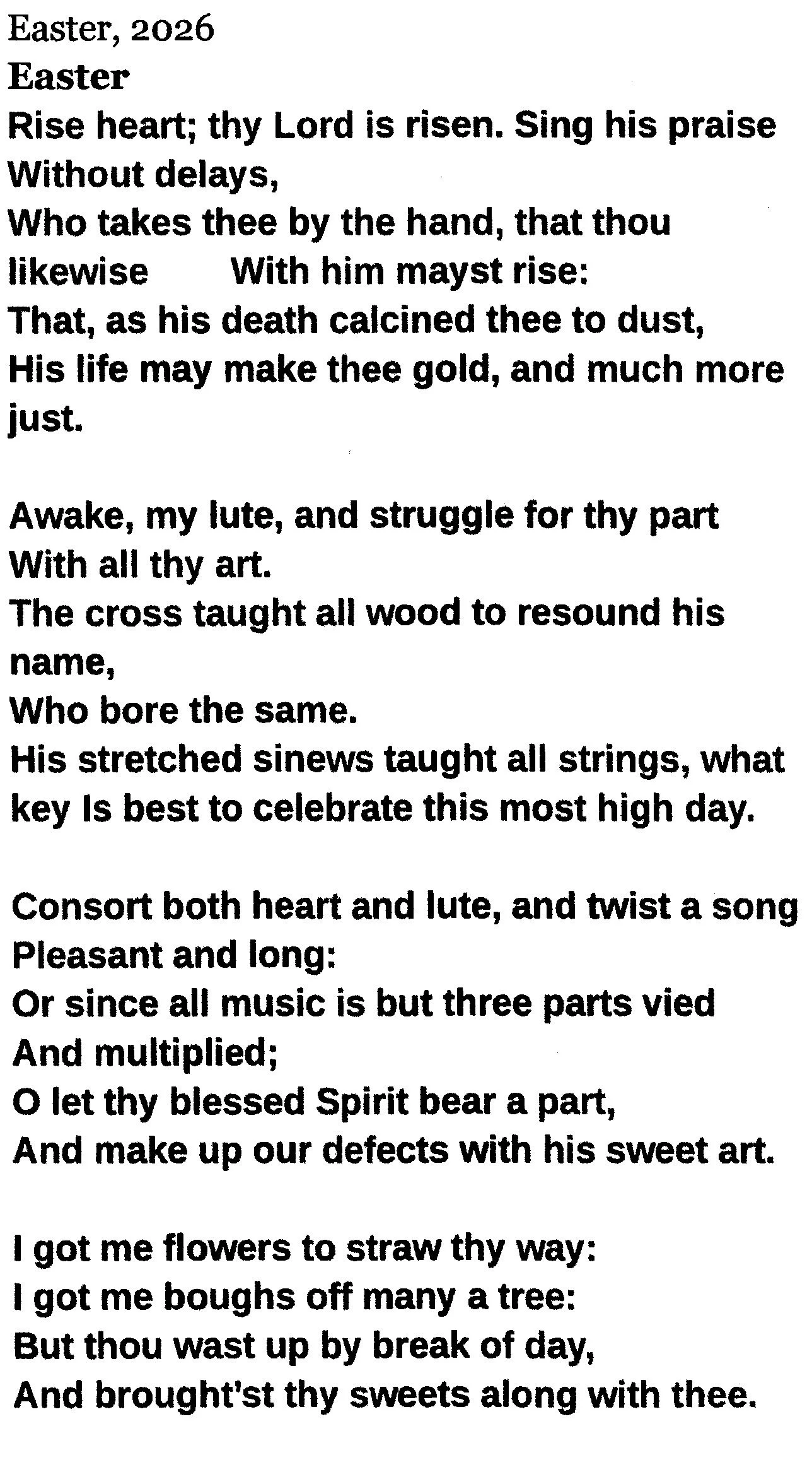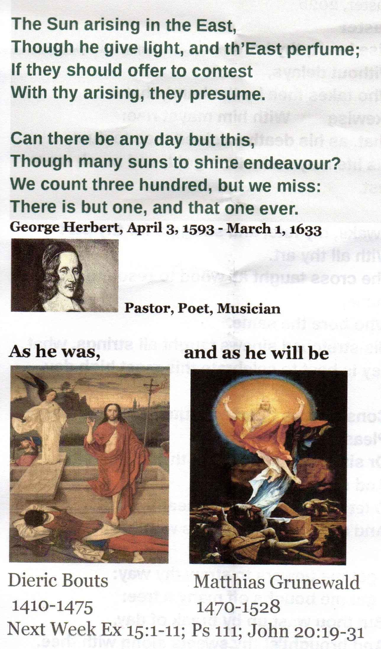 Pastor: Rejoice, heavenly powers! Sing Choirs of Angels! Exult all creation around God’s throne! Jesus Christ, our King, is risen! Sound the trumpet of salvation!